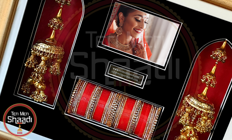 Our creative framing studio helps you design the perfect bespoke display for your Chura and Kaleere. With a wide choice of framing options, mounting designs, interior velvet and colours to choose from, we will help you design a beautiful case to treasure your wedding memory.